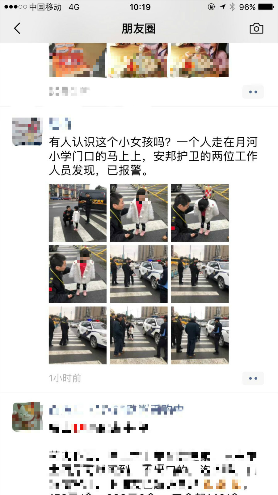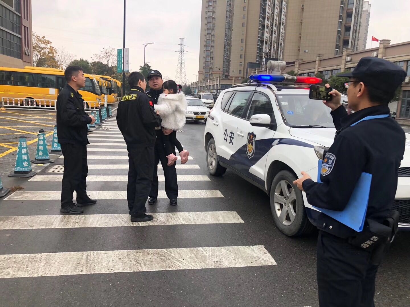12月19日上午9时左右,浙江湖州安邦护卫有限公司员工刘志文、鲁海斌在执行任务至月河小学浮玉校区附近时,发现一名小女孩正独自来回穿梭在马路中间,路上车辆来来往往非常危险。