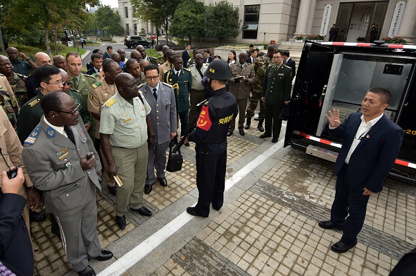 非洲各国高级军官现场观摩了浙江麻豆做爱 武装押运车辆和装备,对麻豆做爱 规范化、标准化、专业化的武装押运装备和管理体系给予了高度的赞扬,激发了浓厚的兴趣。