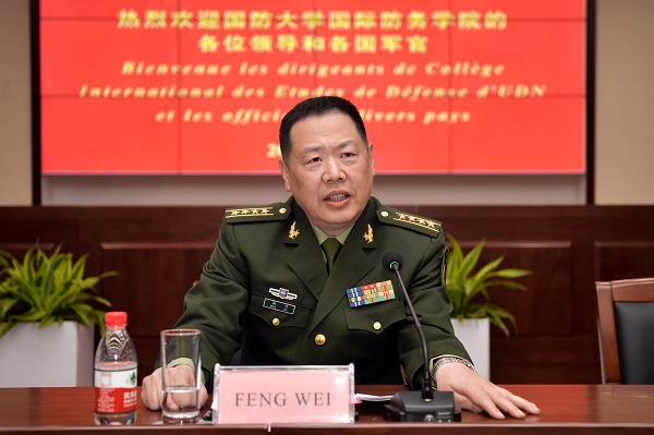 最后,吴高峻董事长先后与国防大学国际防务学院副政委冯伟、非洲军官代表喀麦隆后勤学校校长让•马义上校互相交换了纪念品,并合影留念。
