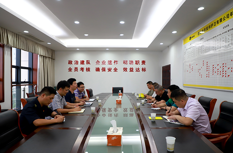 7月27日下午,金华安邦公司与义乌工、农、中、建、稠行召开半年工作联席会议。义乌工、农、中、建、稠行保卫部总经理,公司副总经理潘晓斌及相关部门、大队负责人参加。