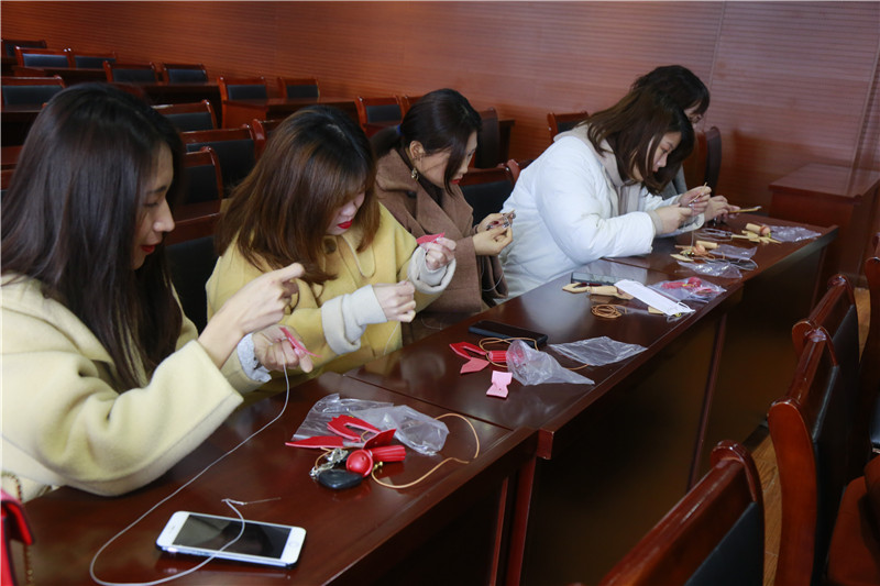 公司工会为筹备此次活动做了详细的策划,公司党委委员、工会主席郑洋代表公司党委班子、工会给大家带来节日的慰问。活动内容丰富多彩。活动开始,老师向大家讲解制作流程、制作要点等,在手工老师的带领下,大家认真倾听、相互学习、精心搭配、亲自实践。现场气氛和谐、精工细作、不断传来大家相互赞许的笑声。经过两个多小时的手工制作,在大家的精心缝制下一串串颜色艳丽,精美的手工挂件呈现在大家的面前。女神们都露出了欢欣的笑容。自己亲手完成自己设计的作品,感受手作艺术的独特魅力。