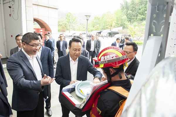 湖州市市长王纲莅临浙江湖州安邦护卫有限公司视察应急救援物资储备及社会化应急救援队伍建设