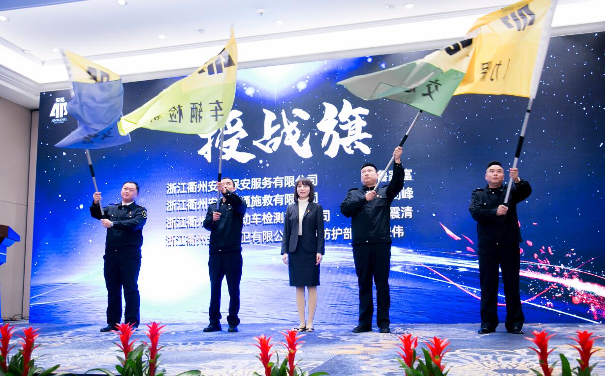 安邦保安服务公司、交通施救公司、机动车检测公司及科技防护部负责人分别上台发言,他们简要总结了各自业务成绩,阐述了2020年工作目标。张淑芬为三家子公司和技防部授战旗。