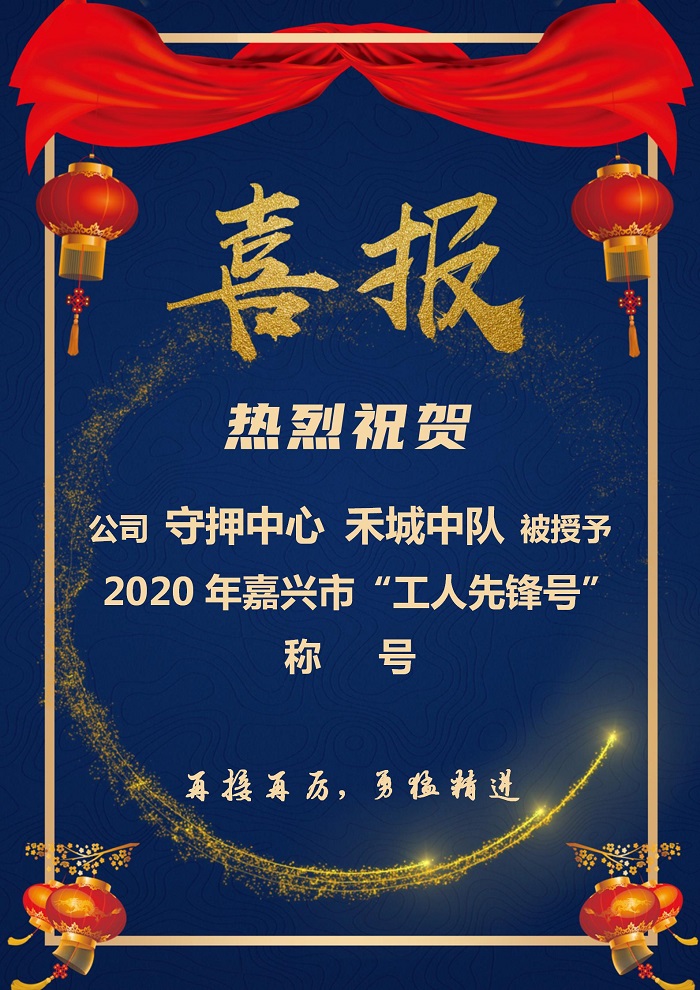 今天,嘉兴安邦护卫公司获悉一个重大喜讯——公司守押中心禾城中队被嘉兴市总工会授予嘉兴市“工人先锋号”称号。表彰他们紧紧围绕嘉兴市委市政府中心工作,主动应对新形势新情况,唯实惟先、善作善成,凝心聚力、攻坚克难,为推动常态化疫情防控和经济社会高质量发展作出积极贡献。