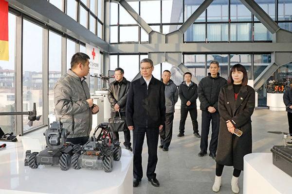黄希和察看安邦通航智能科技(衢州)有限公司无人机实战应用成果、软件信息化效能、硬件智能化产品以及无人机培训教育成果,听取关于公司构建城市安全立体防控生态的业务发展核心理念以及业务服务、教育培训、软硬件信息化板块应用成果和未来发展方向汇报后,就空域安全管控、空域管理服务以及全面保障方面作出指示。