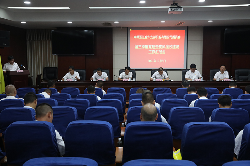 10月8日,金华安邦护卫公司召开第三季度党风廉政建设报告会,公司领导班子、各支部书记、部门负责人参加会议。