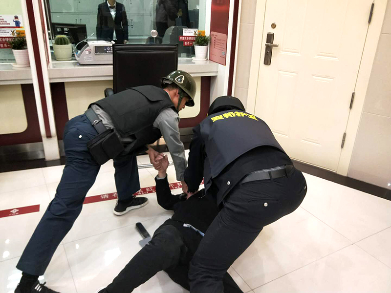 演练现场真实还原我方队员在与行方交接款时突遇持刀歹徒抢劫,双方共同制服歹徒的场景。演练过程中,双方人员迅速反应,沉着应对,严格按照应急方案进行处置,成功将歹徒制服,圆满完成了此次联合防抢应急演练,达到了预期效果。