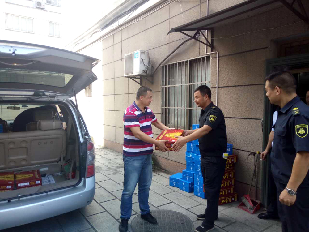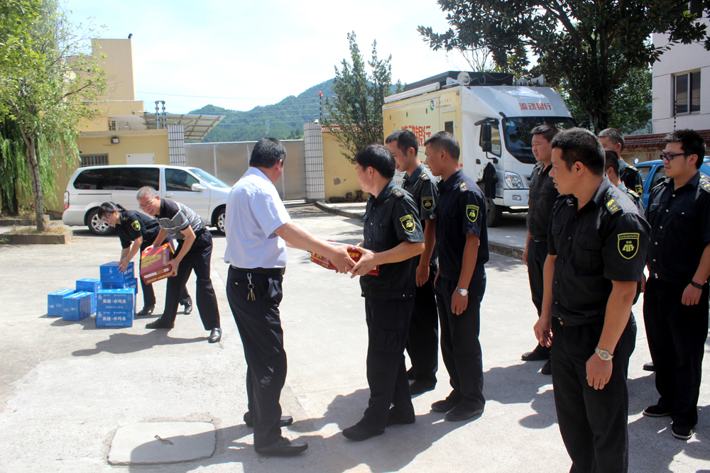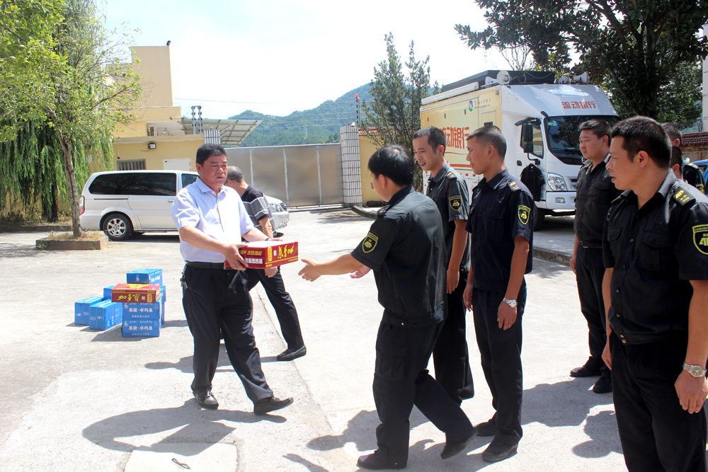 入伏以来,我市连续的高温天气,给金华安邦公司战斗在一线的守押队员们带来了极大的考验。为确保日常守押工作有序运行,7月17日,由公司总经理方顺富,副总经理张红兵、潘晓斌带队,兵分三路到公司下辖各大中队进行高温慰问,给队员们送去防暑降温用品的同时,也送去了公司对一线队员的关心和问候。