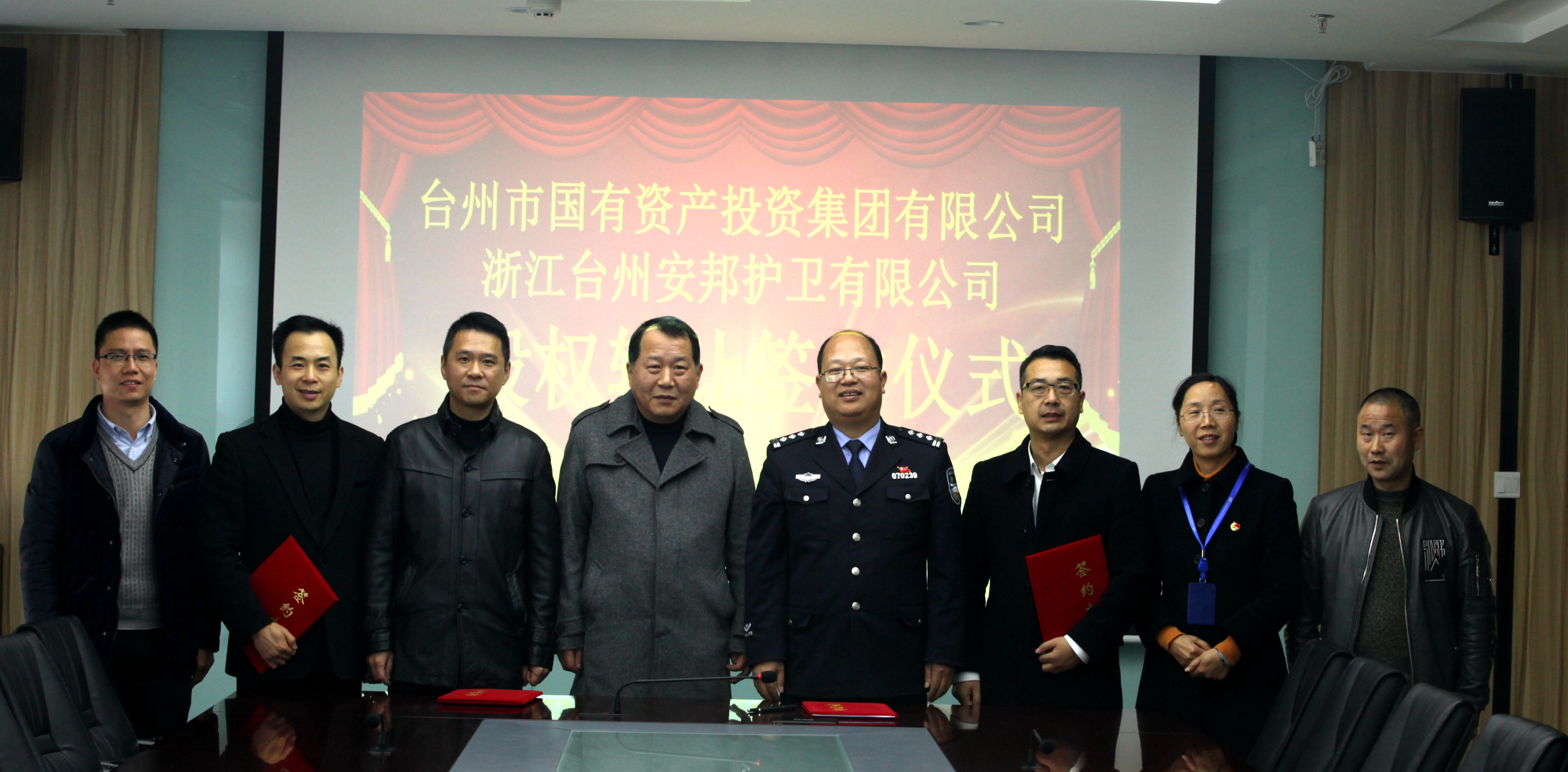 12月22日,浙江台州安邦护卫有限公司与台州市国有资产投资集团有限公司股权转让签约仪式在公司会议室举行。公司成功收购台州经济开发区保安服务有限公司100%股权。台州市国有资产投资集团有限公司董事长周琳东、总经理李战胜、投资发展部经理方兆波;台州市公安局后勤处处长王六灵、台州湾循环产业集聚区公安分局政委叶嵊波;台州经济开发区保安服务有限公司总经理张祖伦;公司党委书记、总经理李万新,党委委员、副总经理徐晓丽等出席签约仪式。李战胜与李万新签署股权转让协议。