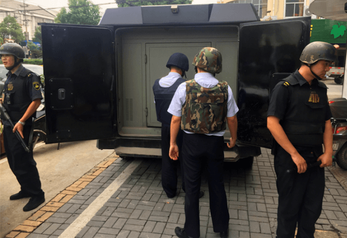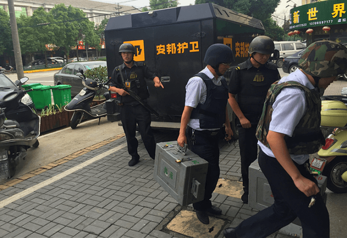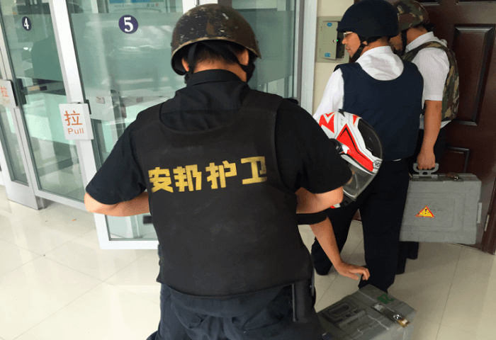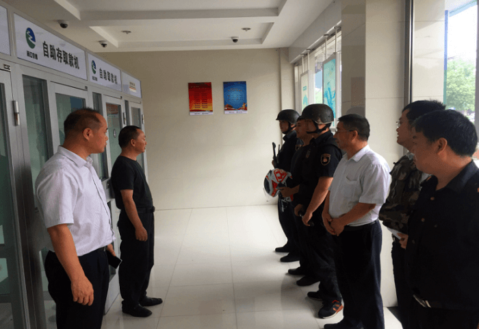 为提高安邦护卫守押人员和银行员工应对突发事件的处置能力,加强国庆期间的安保工作,迎接党的“十九大”胜利召开。9月27日下午,嘉兴县市守押大队海宁队联合农商银行开展了一次离行式ATM点防抢劫实战演练。
