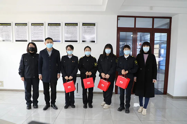 针对部分女职工因工作原因未能参加户外活动,3月8日上午,浙江衢州安邦护卫有限公司党委书记、董事长、总经理张淑芬来到资产财务部、组织人事部、市涉案财物管理中心、指挥监控中心等岗位,给女职工送上贴心的慰问品和真挚的祝福。