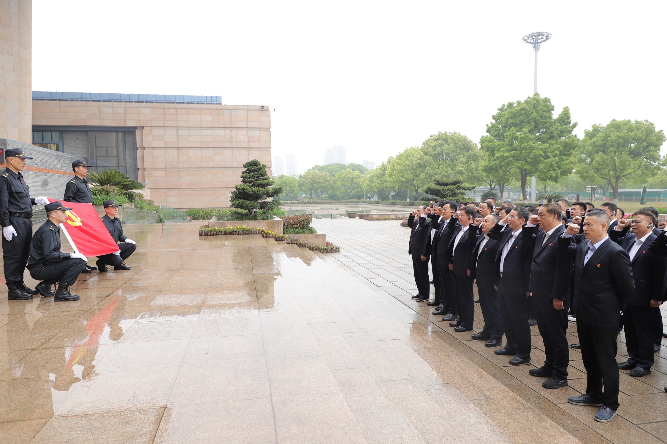 在南湖革命纪念馆广场,集团党委书记、董事长吴高峻领誓,大家面对鲜红的党旗,高举右手,重温入党誓词,永葆入党初心。一句句铿锵有力的入党誓词,一颗颗信仰坚定的赤诚初心,表达对党和人民的无限忠诚。