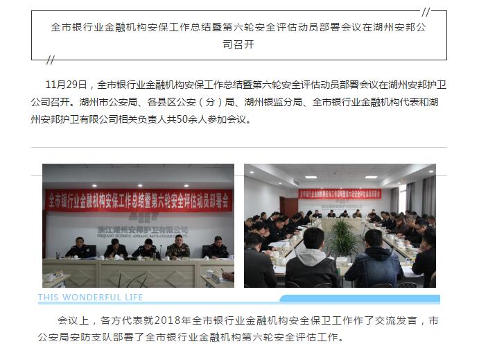 全市银行业金融机构安保工作总结暨第六轮安全评估动员部署会议在湖州安邦公司召开