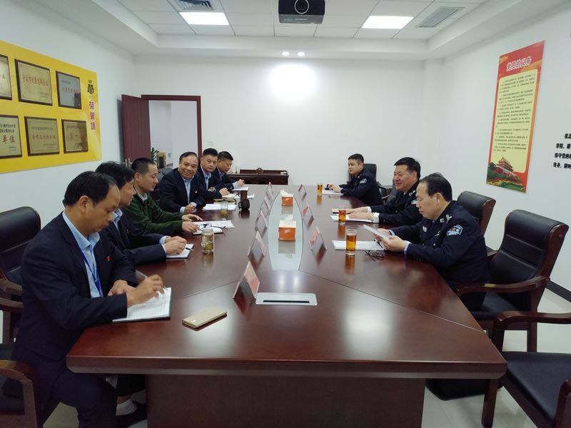 11月8日,市公安局党委副书记、副局长罗利达,治安支队支队长毛鹏飞一行,在公司董事长王恒建的陪同下,到公司调研指导,公司经营班子参与调研。