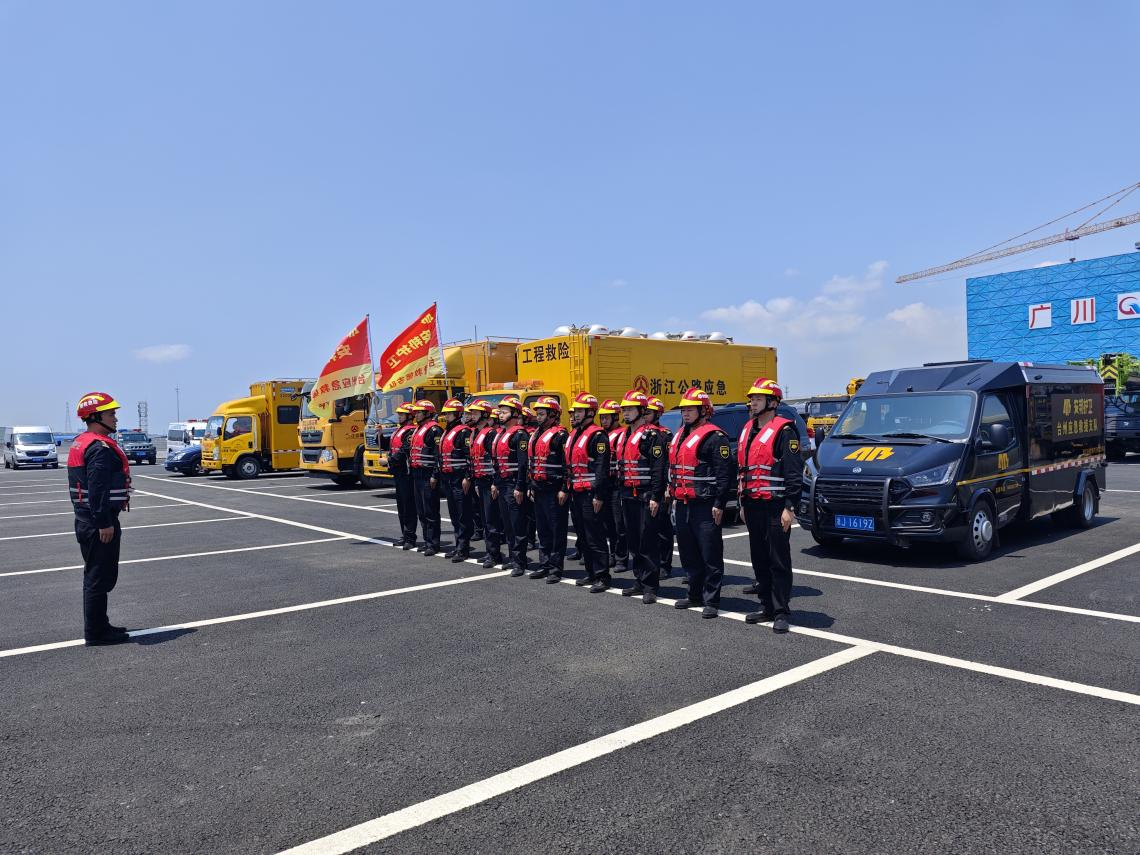 接到任务后,浙江省防汛抗旱应急救援安邦护卫总队第一时间组建了演习指挥部,部署开展演习拉动检验工作,派出杭州支队、宁波支队、绍兴支队、台州支队等四支队伍,共投入人员95人,车辆15台、无人机3架、冲锋舟2艘、橡皮艇5艘、皮划艇3艘、单兵装备86套等物资。4月27日上午8时,在演习指挥部统一指挥下,四支队伍分别从基地出发前往金华婺城区演习集结现场;途中,根据拉动预案要求现场开展轮胎爆胎更换备胎、水箱过热拆换节温器两个科目。中午12时,四支队伍准时、安全抵达演习集结地;下午16时许,各支队安全返回基地,圆满完成了演习拉动检验任务。