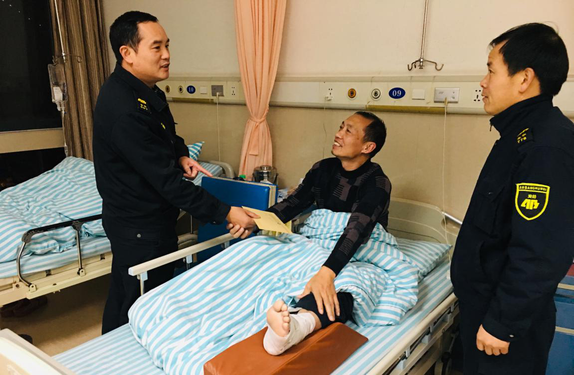 杨大量是东阳磐安中队驾驶员,因在家中不慎摔伤住院治疗。李永朝专门前往探望,详细的询问受伤经过、治疗进展情况、身体状况等,劝慰队员及其家人放宽心好好养伤,不要担心工作上的问题,并祝愿他早日康复。
