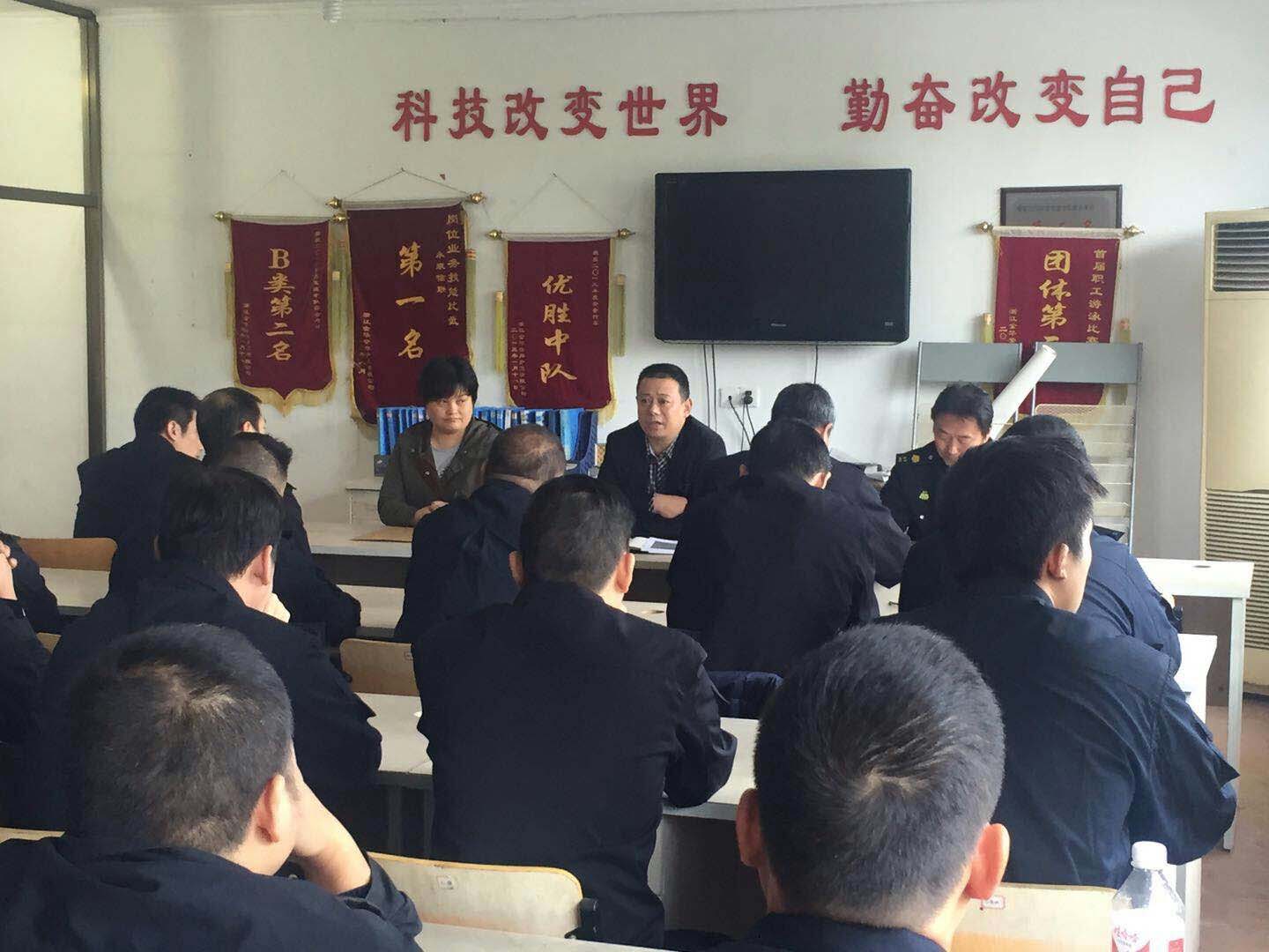 11月16日上午,安邦公司副总经理张红兵、人力资源部经理曾晓黎到永康农商行中队召开座谈会。