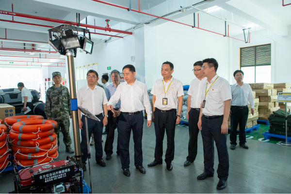 6月10日上午,湖州市委书记马晓晖,市委常委、常务副市长杨六顺以及市委秘书长钱仲良等领导一行,在市水利局局长罗安生,市应急管理局局长朱建祥的陪同下,到湖州公司视察应急救援物资储备及社会化应急救援队伍建设情况。