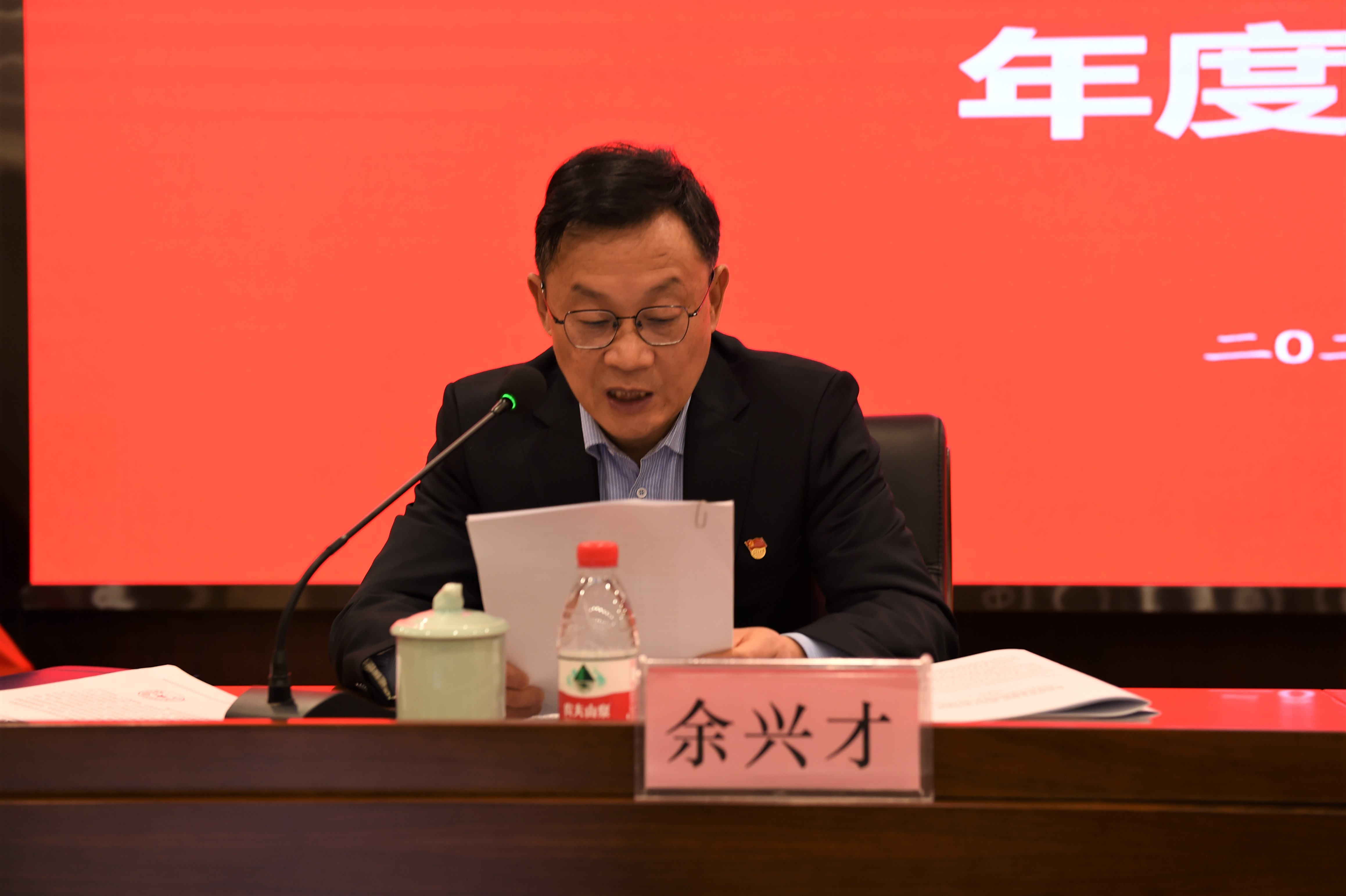 余兴才宣读了省国资委向大会发来的贺信和关于表彰年度先进个人和团队的决定。