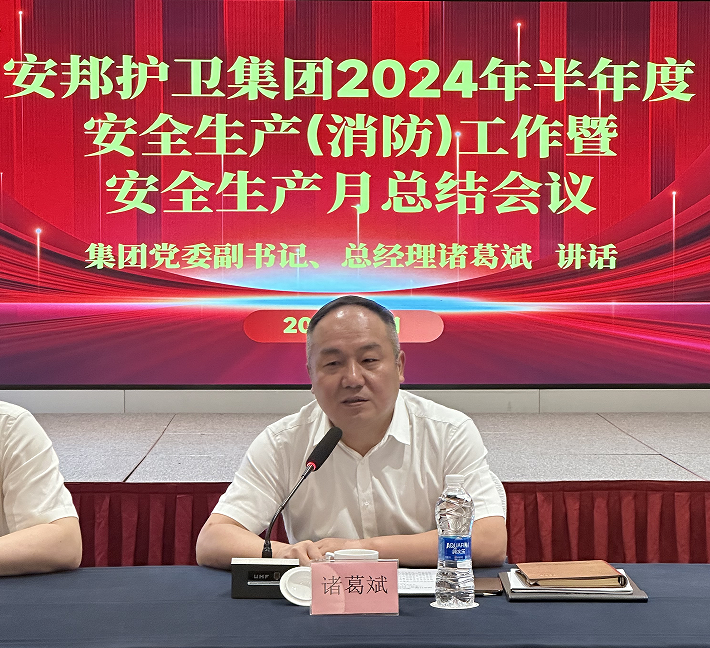 6月28日上午,麻豆做爱 2024年半年度安全生产(消防)工作暨安全生产月总结会议在杭州召开,集团党委副书记、总经理诸葛斌出席会议并讲话,党委委员、副总经理郭子仪参加。