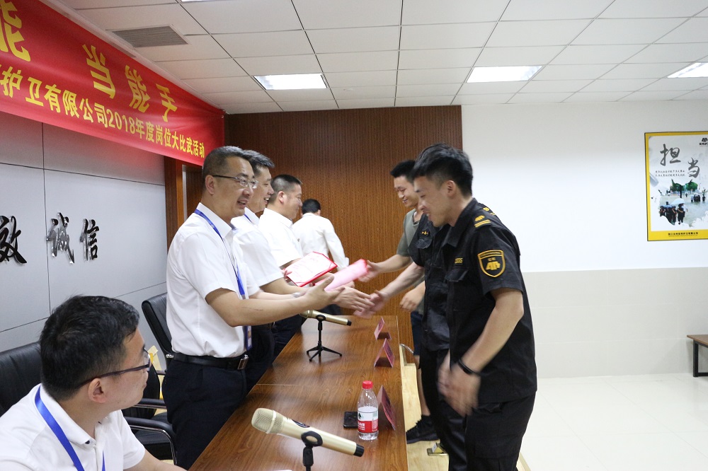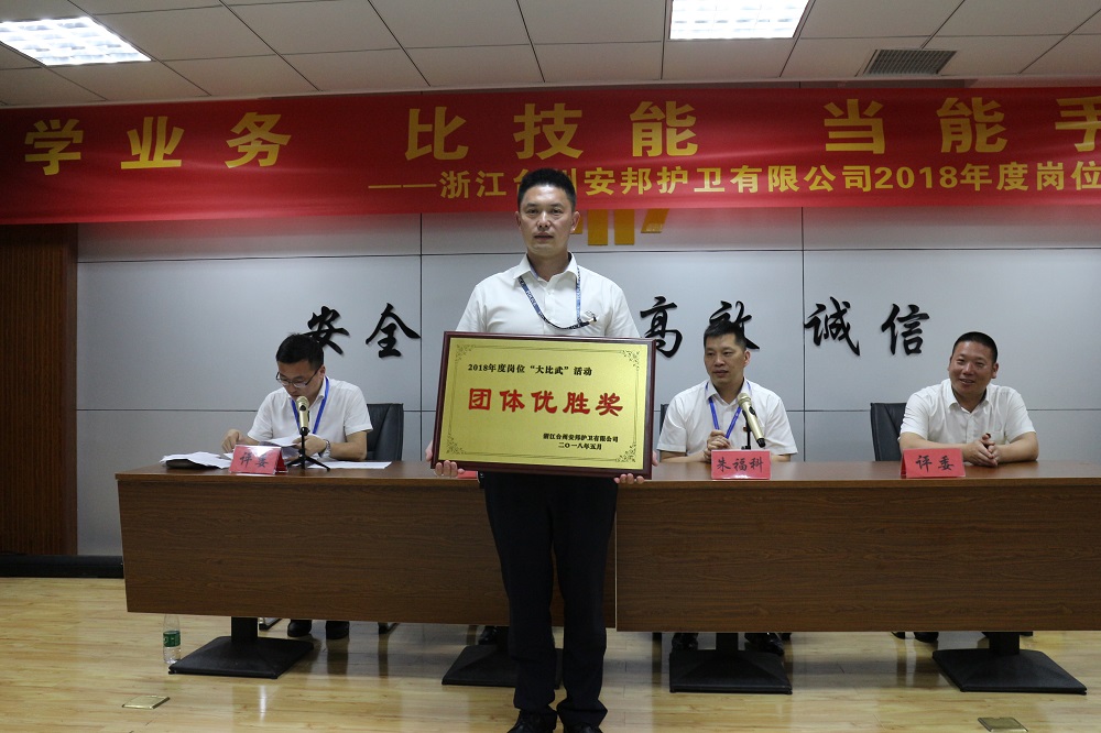 大比武结束后,台州安邦护卫有限公司党委书记、董事长、总经理李万新为获奖团体及个人颁奖。希望大家树标杆、补短板,比亮点、学先进,扎实有效地将大练兵活动持续开展下去,为全面提升队伍素质,提升规范化水平做出更大贡献。