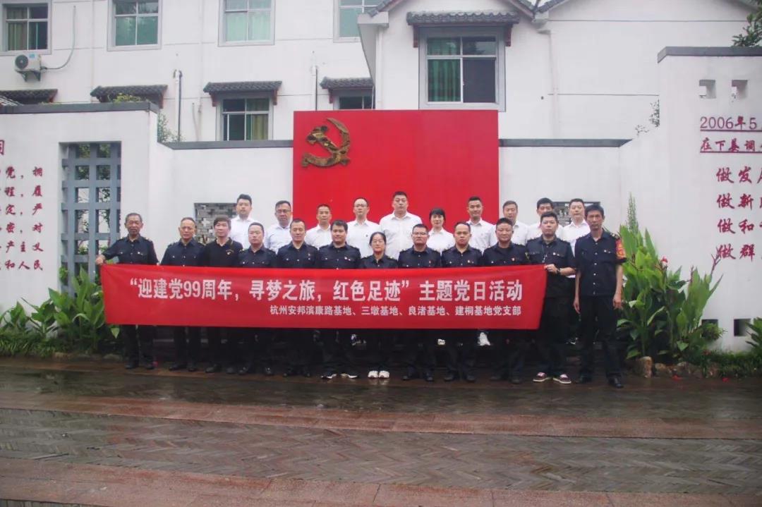 为了深刻领会党的十九大提出的“实施乡村振兴战略”、“坚持农业农村优先发展”、“绿色发展”、“人们对美好生活的向往就是我们的奋斗目标”等关键词的丰富内涵,以及习近平新时代中国特色社会主义思想以人民为中心的发展理念。公司滨康路、三墩、良渚、建德桐庐基地党支部开展“迎建党99周年,寻梦之旅,红色足迹”主题党日活动。