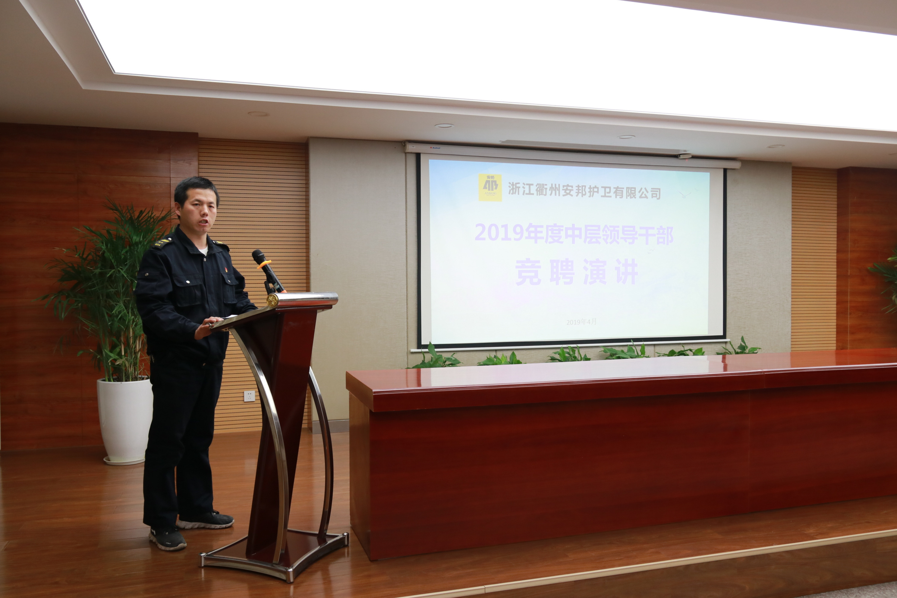 为进一步优化干部队伍结构,增强干部工作活力,4月8日晚,衢州安邦护卫公司组织召开中层领导干部竞聘演讲大会,公司党委班子及干部职工共50余人参加会议。