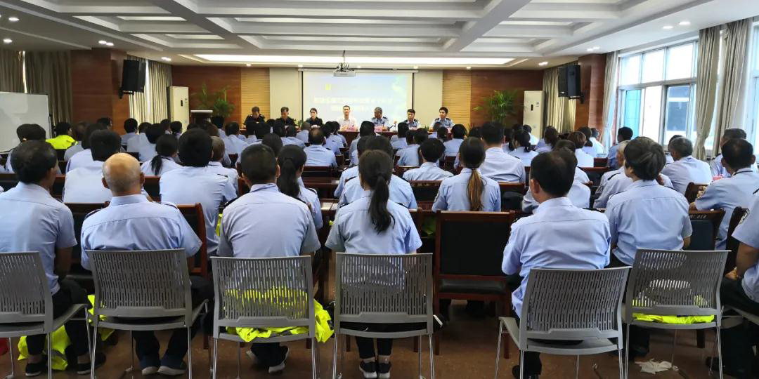 9月18日下午,衢州安邦保安公司组织召开创建全国文明城市交警长干队动员誓师大会。交警柯城大队副大队长王伟、中队长何超、副中队长祝伟,衢州安邦保安公司分管领导琚苏炳、副总经理席霞、副总经理秦万生、保安运管部经理徐镇峰,全体交警创文长干队员共百余人参加了会议。