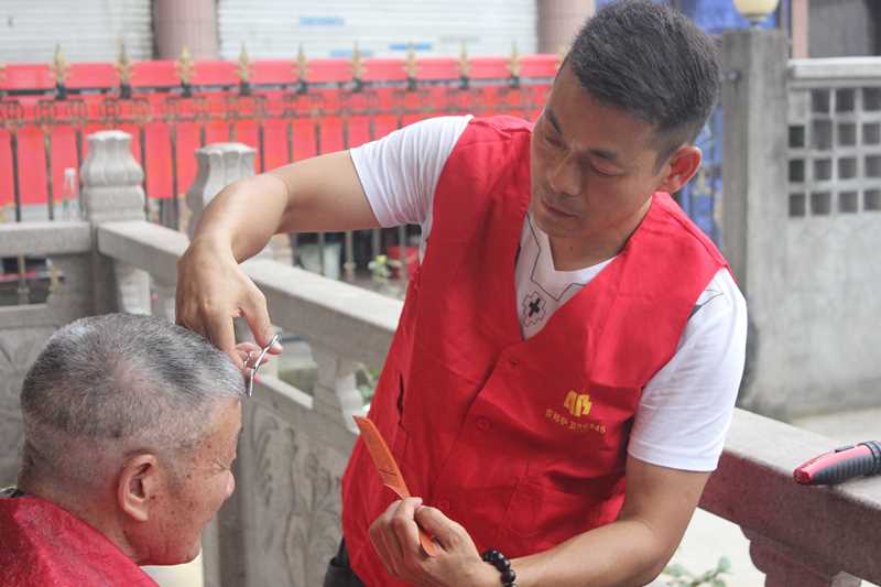活动走进乐清市城东街道后所村老年协会,为老党员、孤寡老人和村民进行志愿服务。在活动现场,党员志愿者为老人们义务理发、打扫卫生、维持现场等,以实际行动践行“两学一做”,做合格党员。活动从下午一点一直持续到晚上八点。