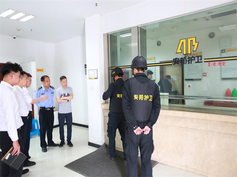 孟华伟支队长一行先实地踏看了公司枪库室、运维中心等地方,并对公司基地建设、区域划分以及业务平台操作等情况进行了详细了解。调研会上,公司党委书记、董事长、总经理胡秀荣向孟支队长一行汇报了公司的基本情况和业务发展情况。胡总表示,公司一直以来非常重视安全生产工作,强化内控监管,严抓队伍纪律。近几年,银行现金流缩减、业务萎缩趋势明显,公司正积极寻求转型升级。当前,公司朝着信息化、平台化方向发展,已经开展了城域物联网、涉案财物管理、社会涉毒检测、职业技能培训等项目,获得了涉密信息系统集成乙级资质。下一阶段,公司将继续按照打造“两个中心”的思路开展工作,进一步调整优化现金流,向公共安全服务领域拓展业务。