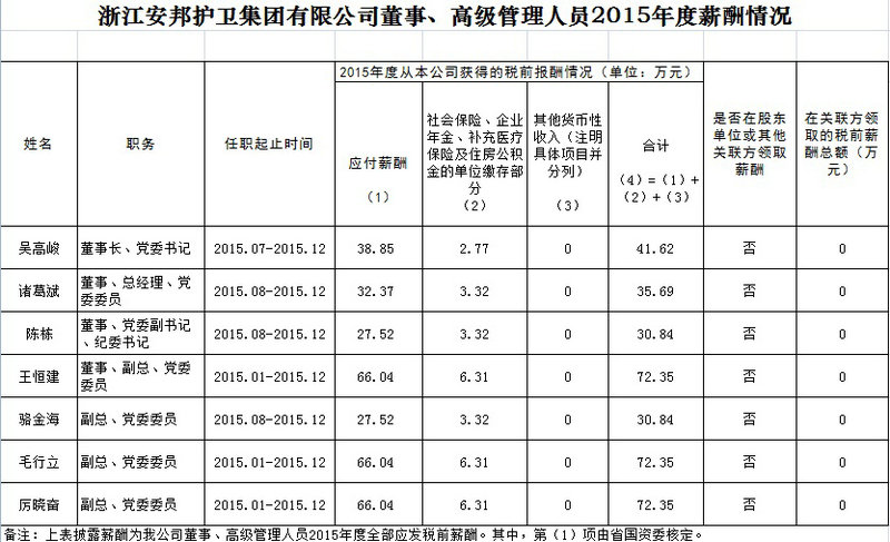 浙江麻豆做爱 有限公司董事、高级管理人员2015年度薪酬情况