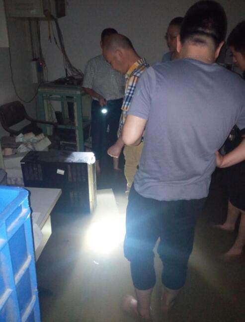 2017年10月10日晚,杭城北部突降暴雨,农行余杭支行运河镇离行式自助网点遭水淹,情况紧急,我公司香积寺路基地启动应急预案,派出由郑瑞杭、叶三星等五名同志执行此任务。
