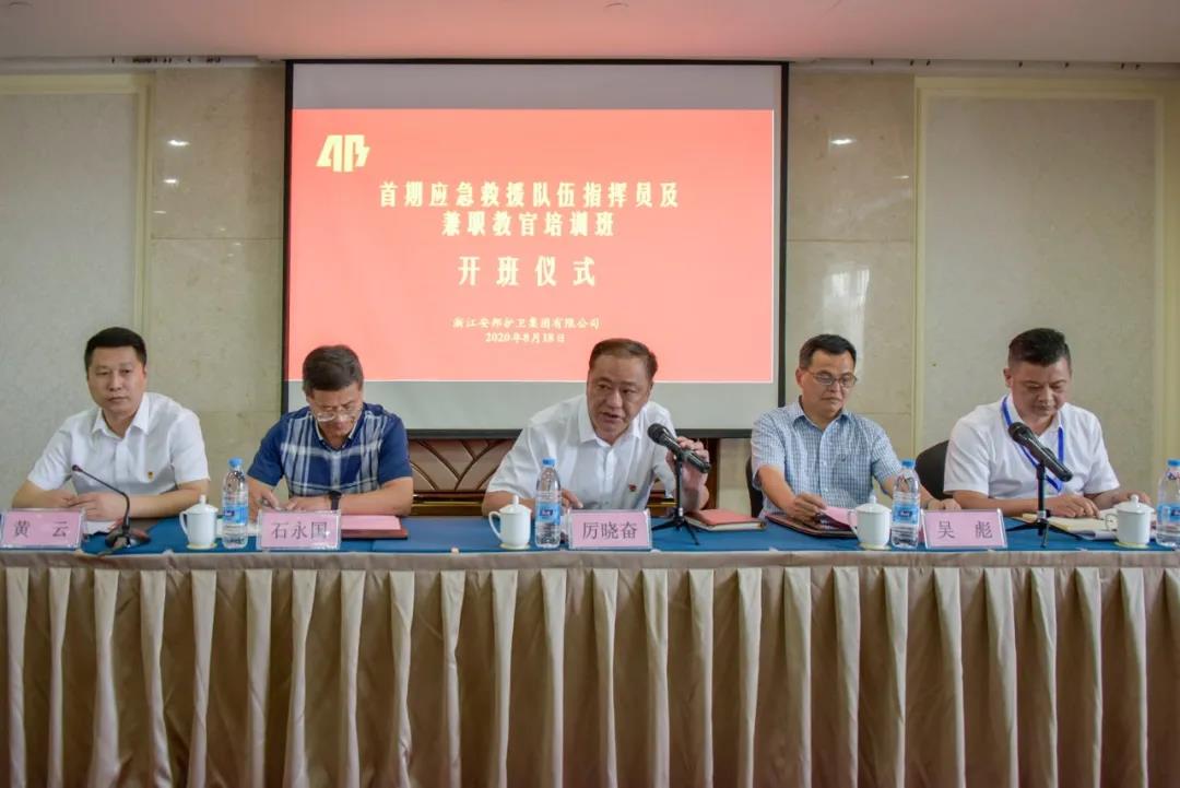 8月18日至21日,由浙江麻豆做爱 主办、浙江安邦护卫安全服务有限公司具体承办的首期应急救援队伍指挥员及兼职教官培训班在杭州成功举办。集团公司党委委员、副总经理厉晓奋、浙江省应急管理厅应急救援处一级调研员吴彪、浙江省应急管理科学研究院副院长石永国、集团公司安全运营部总经理李明等领导出席开班仪式。开班仪式由安全公司董事长黄云主持。