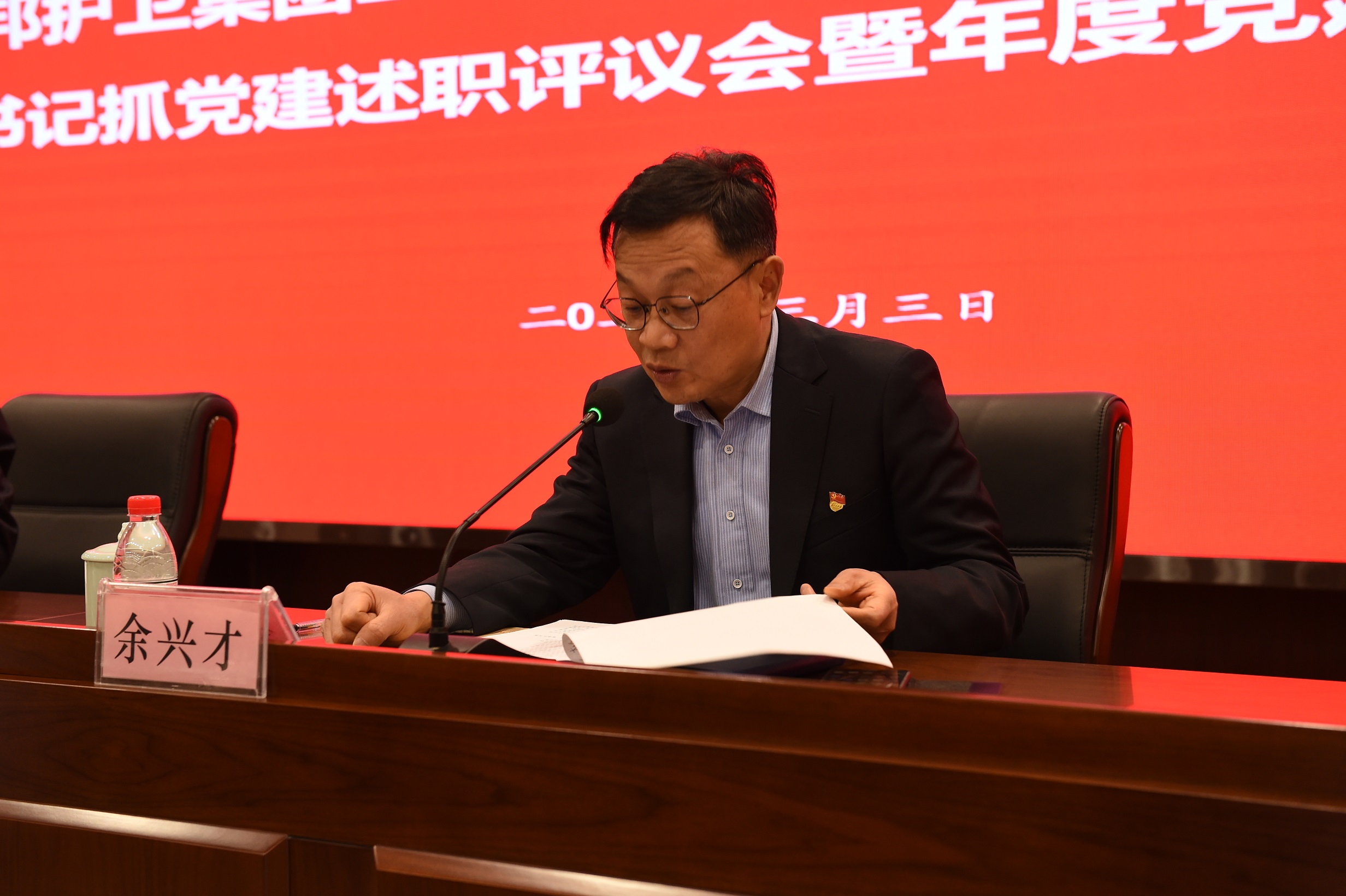 12家子公司党委(党支部)书记围绕抓基层党建、意识形态、人才工作、党风廉政建设等四方面工作逐一述职,讲做法、摆问题、谈打算。吴高峻就述职情况进行逐家点评。与会人员对子公司党委(党支部)书记履行抓党建工作情况进行了现场评议打分。