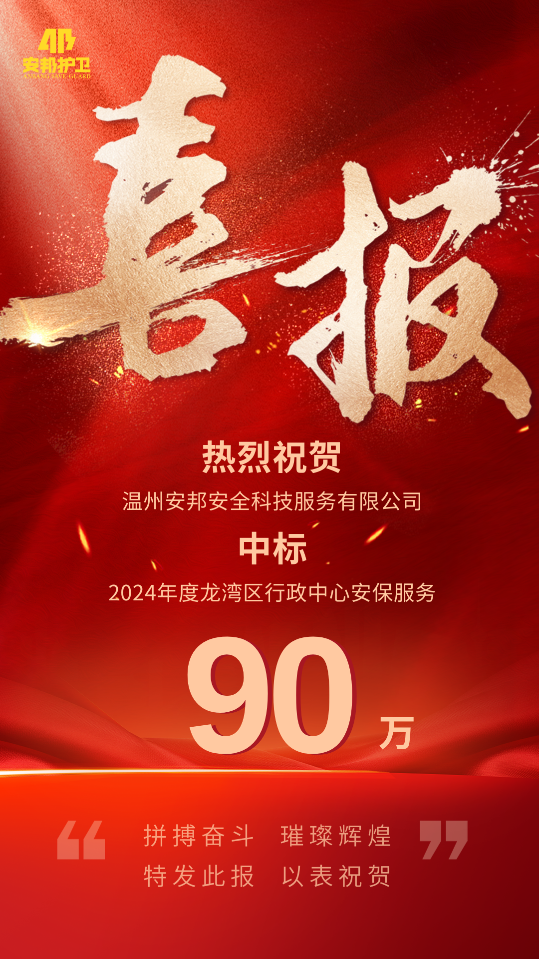 喜报|温州安邦安全科技服务有限公司中标2024年度龙湾区行政中心安保服务