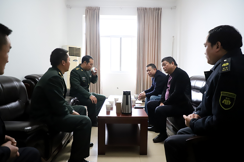 1月11日,金华安邦公司董事长方顺富一行走访慰问磐安县人武部。常务副总经理张红兵等人一同慰问。