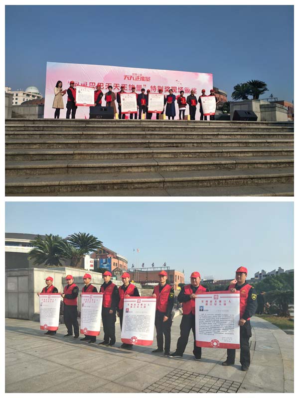 11月27日,临海市委宣传部、临海市文明办联合主办的“天天正能量特别奖暨道德红榜送好人活动”在临海市崇和门广场举行,公司临海押运大队义工服务队配合主办方做好现场颁奖及秩序维护工作。