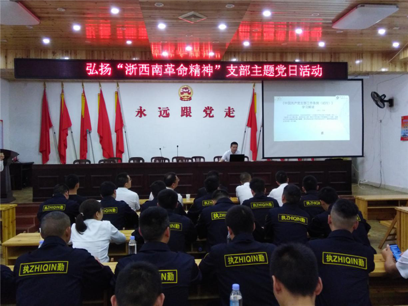 最后,在学习会上,公司党委委员陈彬同志为大家解读《中国共产党支部工作条例(试行)》,他指出《条例》的出台,是推动全面从严治党向基层延伸的重要举措,对加强党的组织体系建设、全面提升党支部组织力、强化党支部政治功能、巩固党长期执政的组织基础,具有十分重要的意义。他要求各支部以学习宣传贯彻《条例》为抓手,切实提高抓好党支部工作、推动党支部建设的本领,要从“浙西南革命精神”汲取新动能,把基层党支部建设成为坚强的战斗堡垒。