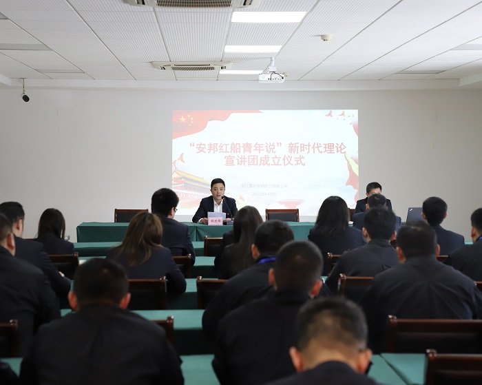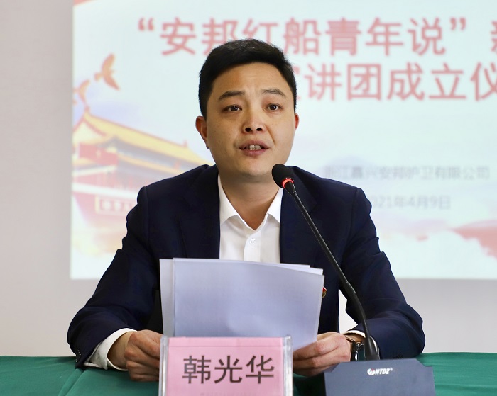 为深入学习贯彻习近平总书记在党史学习教育动员大会上的重要讲话精神,贯彻落实集团党史学习教育动员部署会的要求,4月9日下午,嘉兴安邦护卫组织举办“安邦红船青年说”新时代理论宣讲团成立仪式。活动由公司党委副书记、副总经理徐涯立主持,公司党委书记、董事长、总经理韩光华作重要讲话。公司党委班子成员、职能部门员工、党员代表及团员代表共计40人参加。