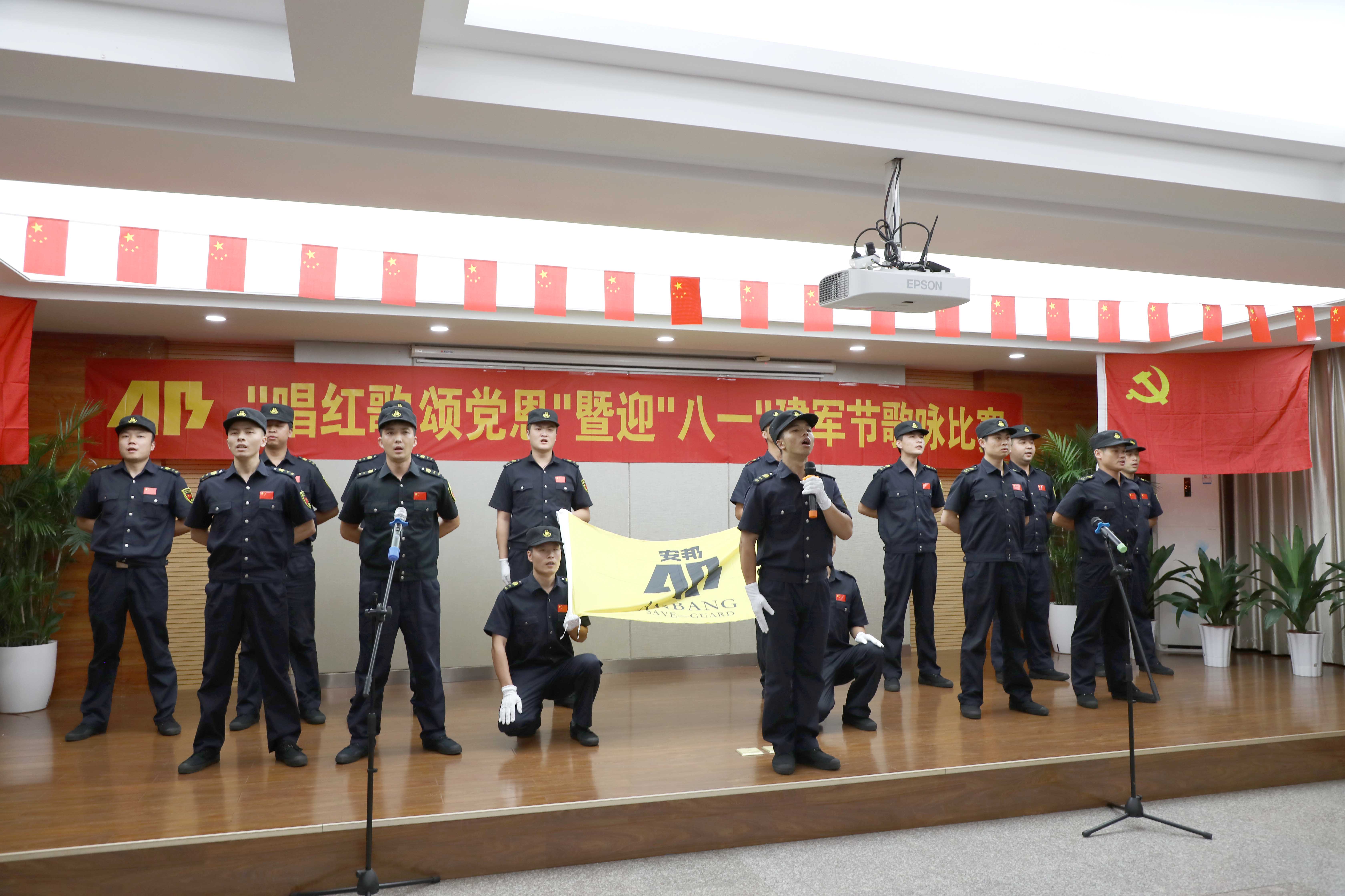 在中国人民解放军建军93周年来临之际,7月30日晚,浙江衢州安邦护卫有限公司举办“唱红歌 颂党恩”暨迎“八一”建军节歌咏比赛。公司党委班子,中层副职以上管理人员,党团员、退伍军人代表,综合、业务管理序列人员参加了此次活动。
