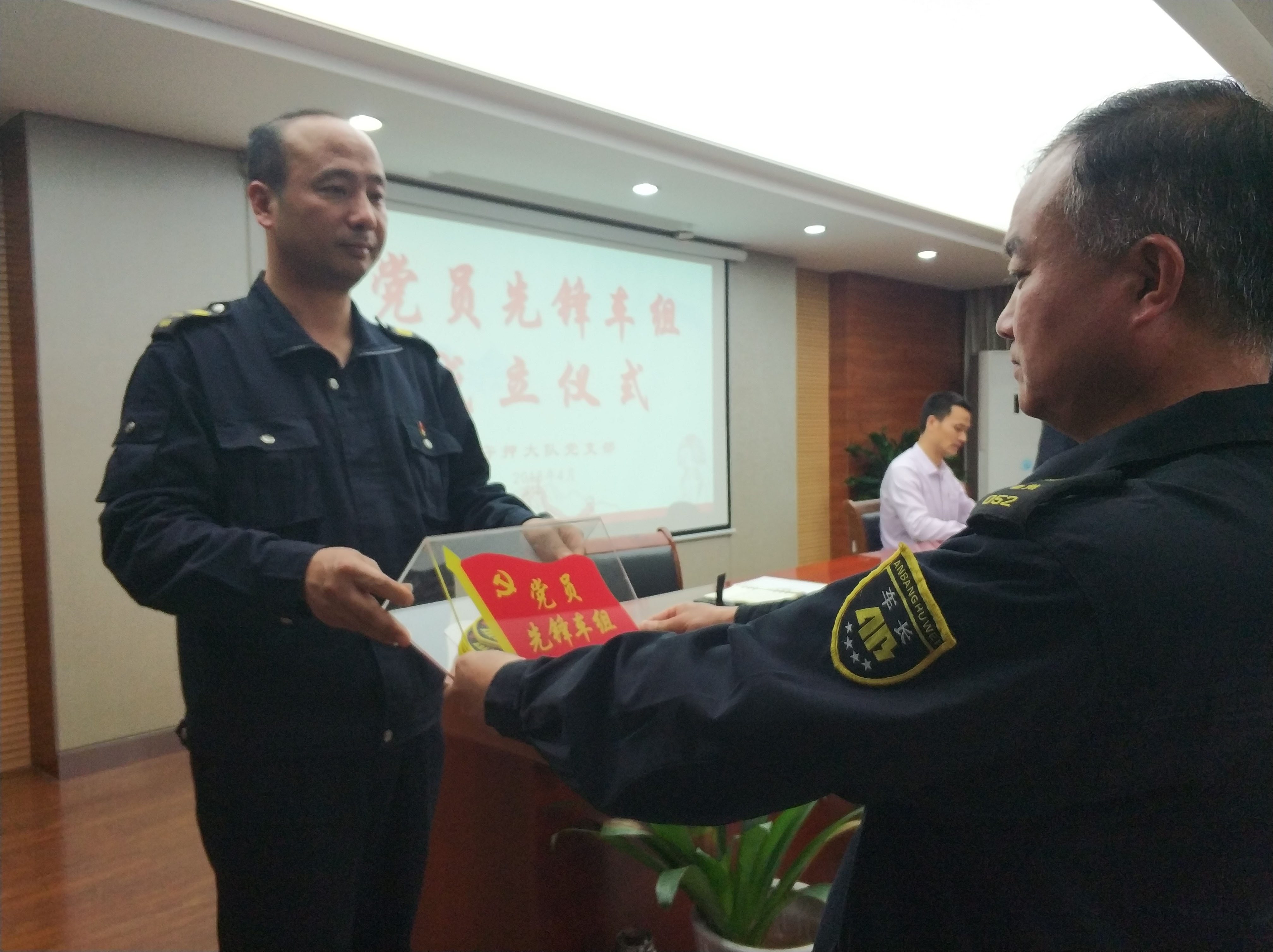 “亮身份 树标杆”——衢安邦守押大队党支部举行“党员先锋车组”授牌仪式
