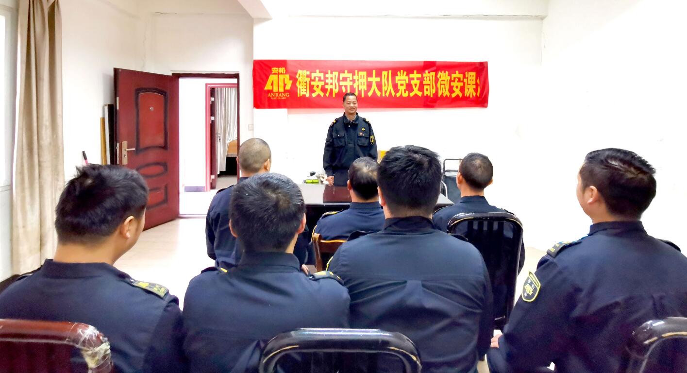 11月18日,浙江衢州安邦护卫有限公司守押大队党支部“微安课”活动走进常山片区押运车组。党员押运员江正福讲授了题为《做一名优秀的押运员》的“微安课”。
