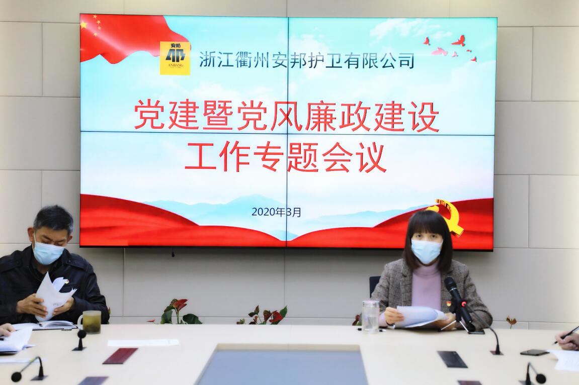3月31日,衢州安邦护卫公司召开2020年党建、党风廉政建设暨全面从严治党工作会议。主要任务是:学习贯彻党的十九届四中全会、十九届中央纪委四次全会,省委十四届六次会议、省纪委十四届五次全会会议精神,部署2020年重点任务,深入推进做好当前及今后一个时期公司党建、党风廉政建设和全面从严治党工作,以高质量党建引领和保障公司高质量发展。