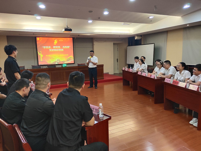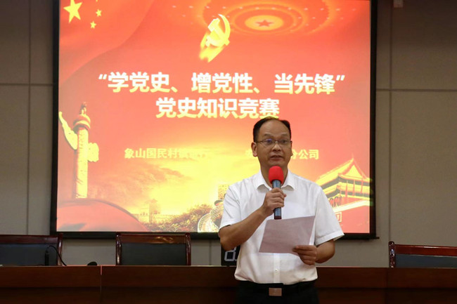 奋斗百年路,起航新征程。为庆祝建党100周年,扎实推进党史学习教育走深走实,6月22日晚上,宁波公司象山分公司党支部与象山国民村镇银行机关党支部在国民村镇银行3楼会议室隆重举行纪念建党100周年党史知识竞赛活动。公司党委委员、副总经理王直敏,安全管理部经理、象山分公司经理王平,国民村镇银行董事长陆宁生、监事长王国俊等领导出席活动。