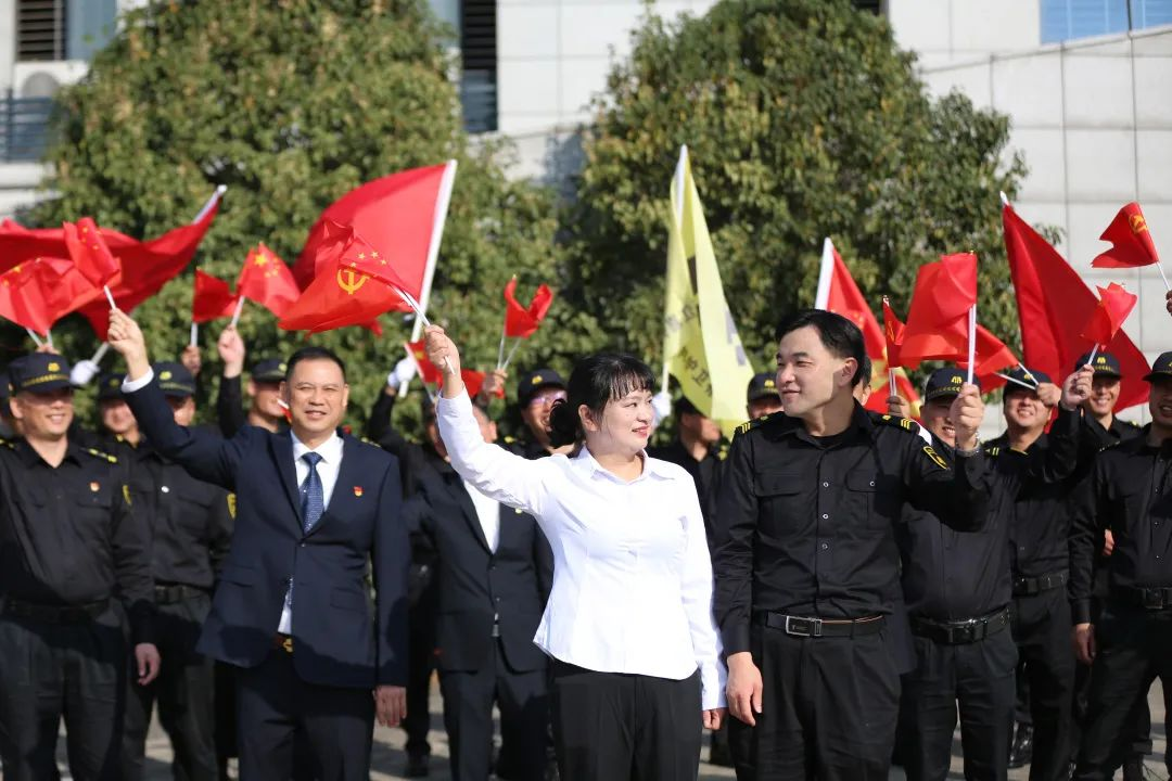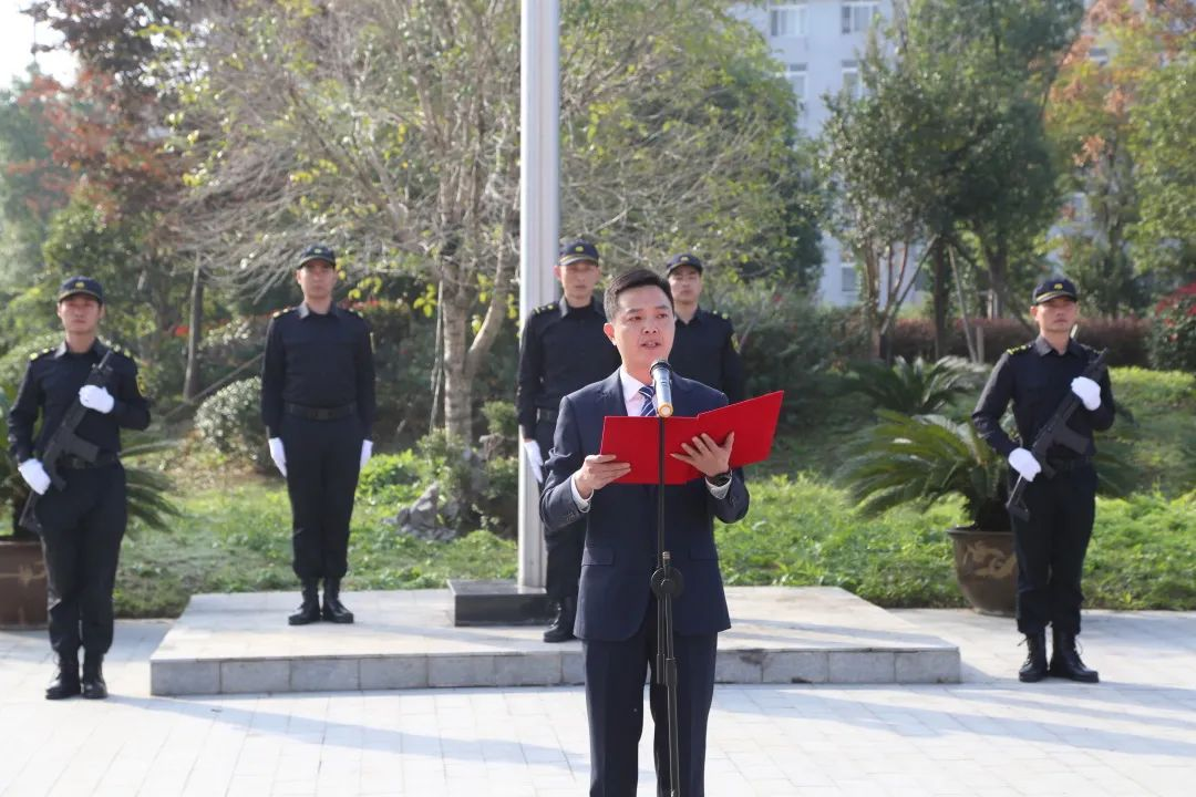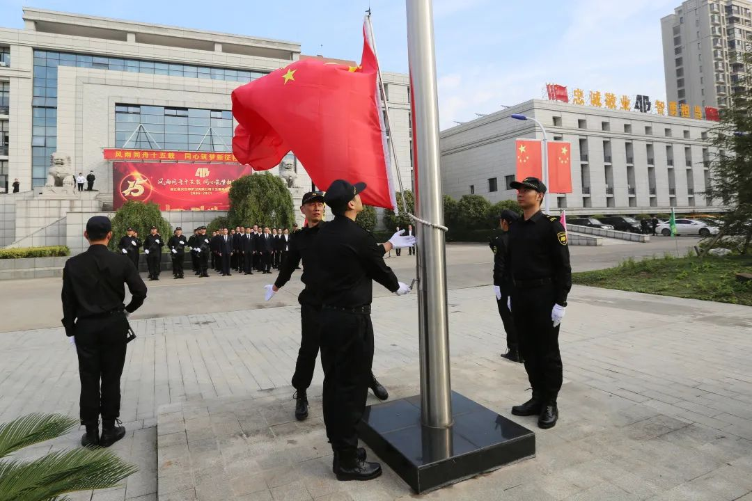 秋意浓,桂花香。11月1日,浙江嘉兴安邦护卫有限公司迎来第三届“守护红船日”。今年是建党100周年,也是公司成立15周年,在这特殊的日子,公司组织庄严的升旗仪式和红歌快闪活动,表达对伟大的党的深情热爱,对“红船精神”的传承弘扬和对公司15岁生日的真挚祝福。公司领导班子、全体中层和部分职工代表参加活动。升旗仪式暨国