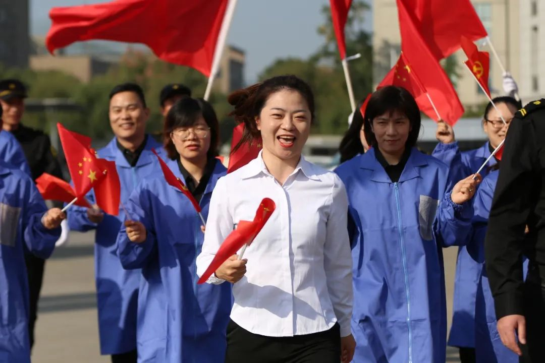 在升旗仪式、国旗下讲话后,“红歌大家唱,‘声’情献给党 ”主题快闪活动随之进行。在六名主唱带领下,列队人员齐声合唱《我们走在大路上》,献礼百年大党、献礼公司15周年。