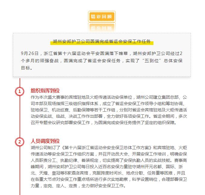 湖州安邦护卫公司圆满完成省运会安保工作任务