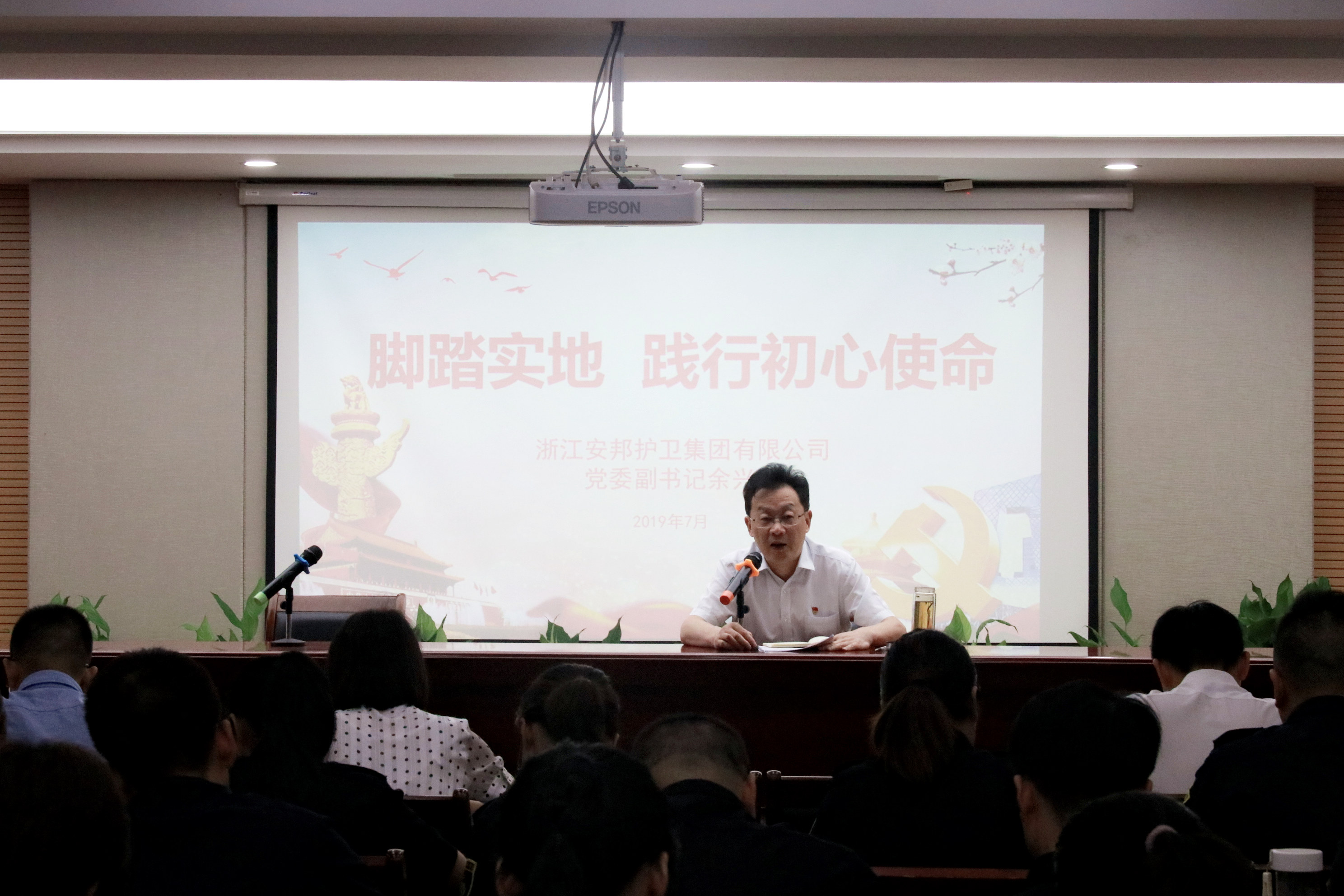 党委副书记余兴才为衢州安邦护卫公司送来了题为《脚踏实地 践行初心使命》的党课。公司党委班子、各子公司、部门党员和综合、业务管理序列人员共51人在公司二楼会议室聆听了党课。