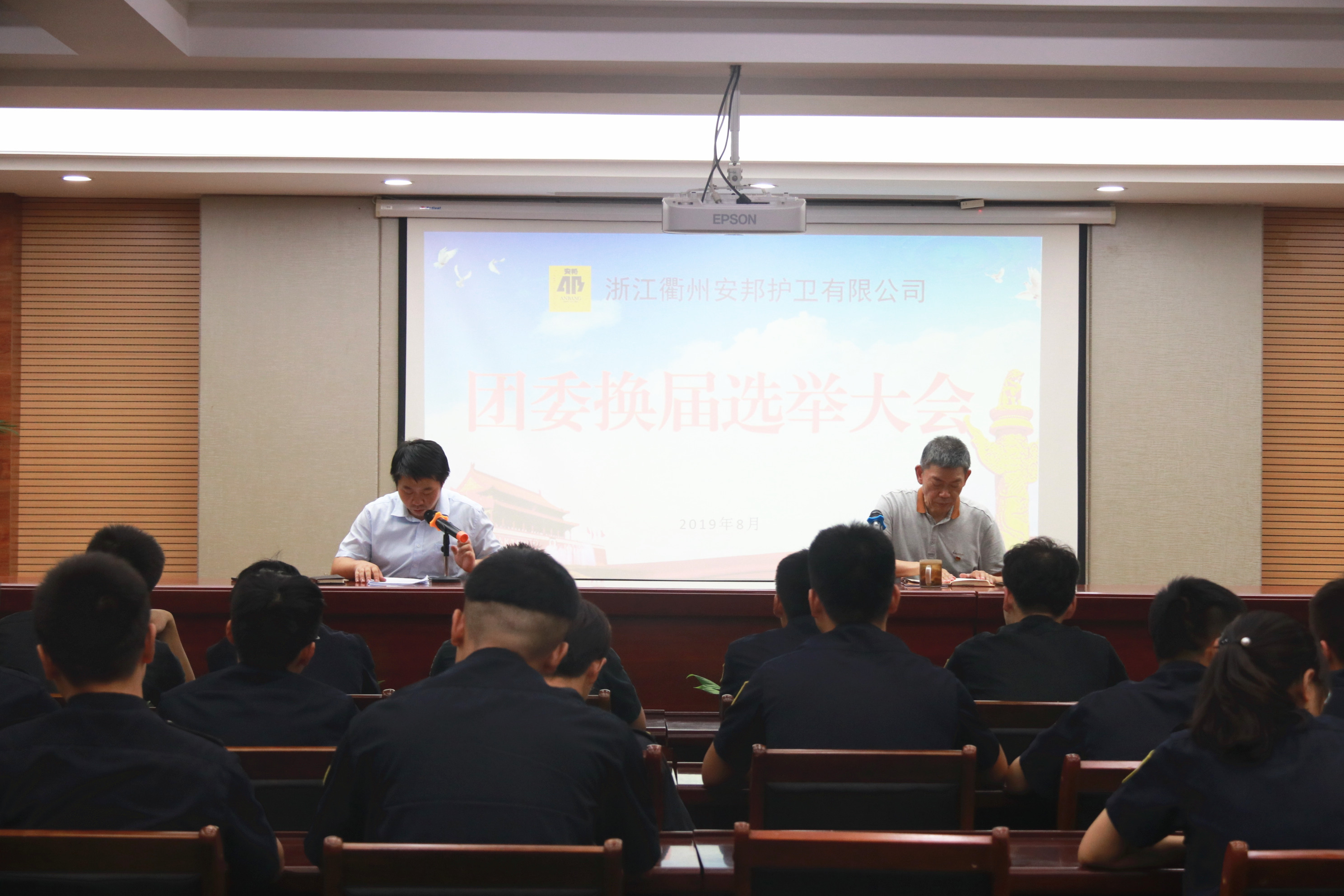 8月13日晚,浙江衢州安邦护卫有限公司召开团委换届选举大会,党委副书记、纪委书记郭启明,团委书记胡翔及团员青年代表共34人参加会议。大会在全体人员起立奏唱中国共青团团歌的氛围中拉开了序幕。