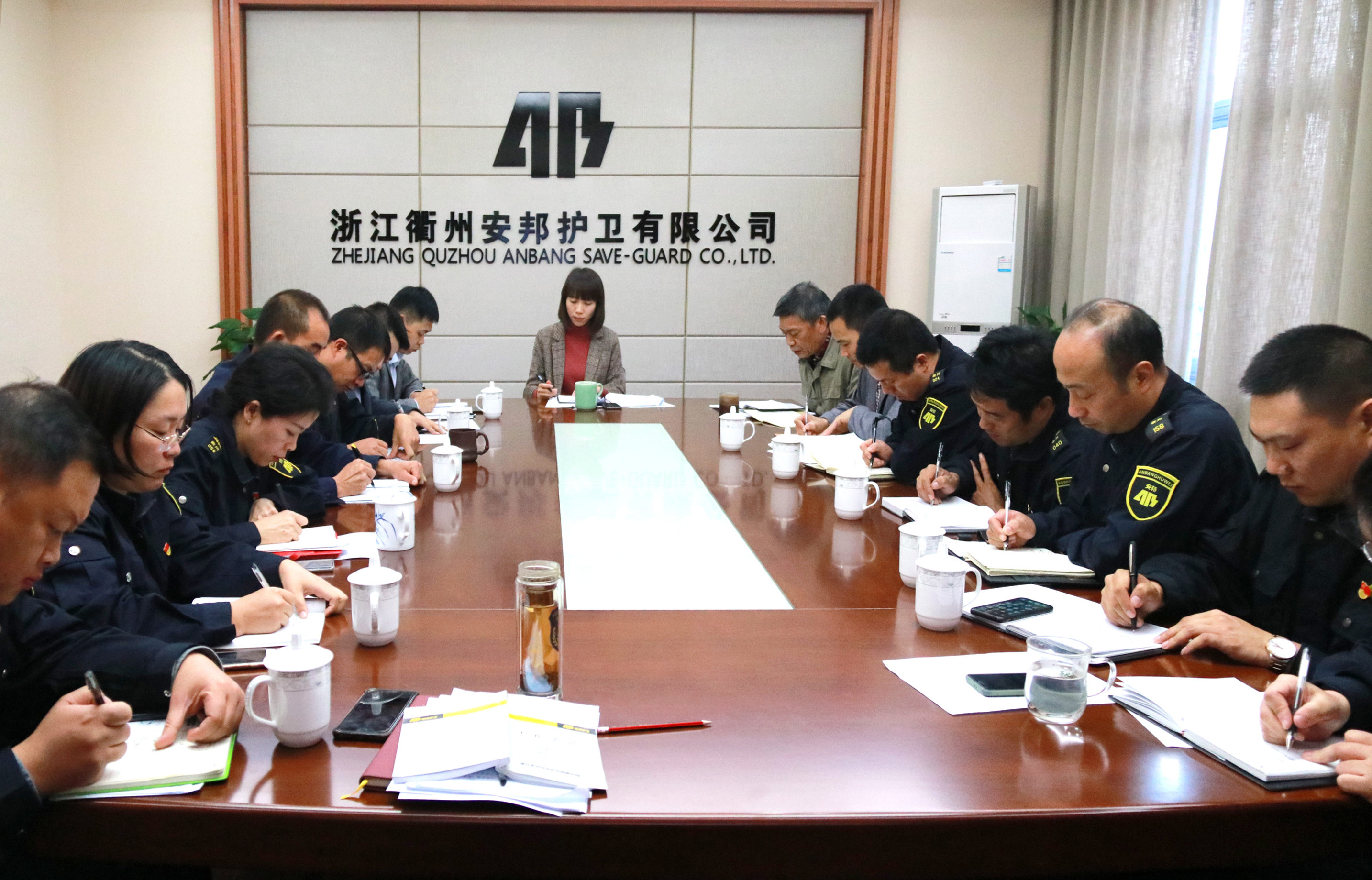 11月8日下午,浙江衢州安邦护卫有限公司党委举行理论中心组(扩大)学习会,专题学习党的十九届四中全会精神,公司党委班子、中层副职以上管理人员及支部委员参加学习。会议由党委书记、董事长、总经理张淑芬主持。